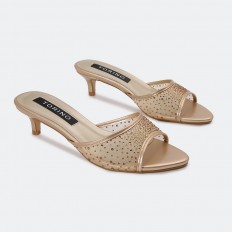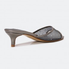 تألقي مع هذا النعال من تورينو بكعب قصير 3سم, تصميم فخم بجزء من التول المزين بالستراس اللامع, مناسب لكافة الأوقات