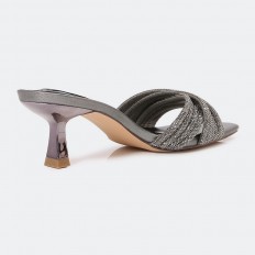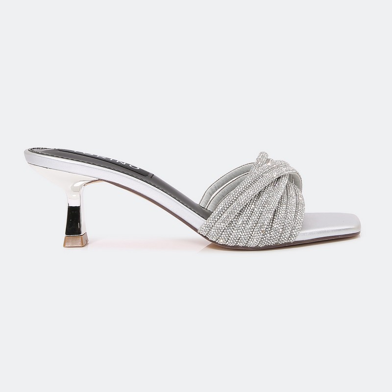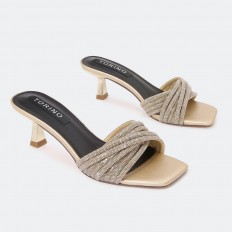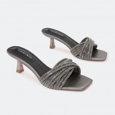 QXQ1600 نعال كعب ذو مقدمة مربعة مزين بحبال الكريستال - Torino