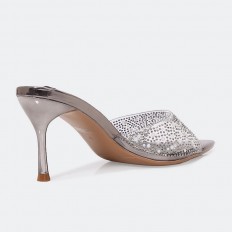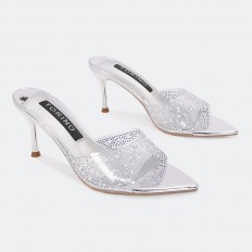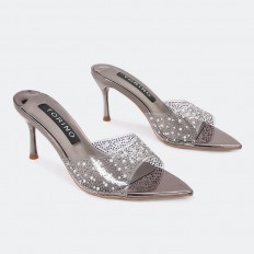 QXQ1608 نعال كعب ذو جزء شفاف مزين باللؤلؤ و الستراس - Torino