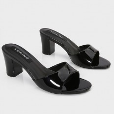 QXQ1856 نعال كعب من الجلد اللامع بمقدمة مستديرة - Torino