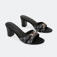 QXQ1938 نعال كعب مزين بإكسسوار ذهبي