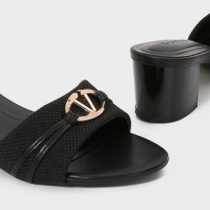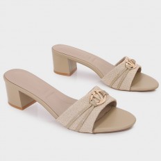 QXQ2166 نعال كعب عريض بنقشة مميزة