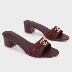 لا غنى عن هذا النعال في تشكيلة أحذيتك، ذو كعب عريض 5سم، مع مقدمة مستديرة بنقشة مميزة مزينة بإكسسوار، مريح ومناسب للإستخدام اليومي
