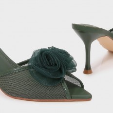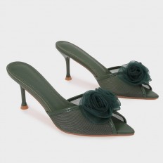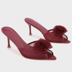 QXQ2387 نعال كعب مزين بوردة من التول - Torino