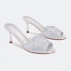 تألقي مع هذا النعال من تورينو بكعب رفيع 7سم, تصميم فخم بجزء من التول المزين بالستراس اللامع, مناسب للأوقات المسائية