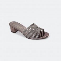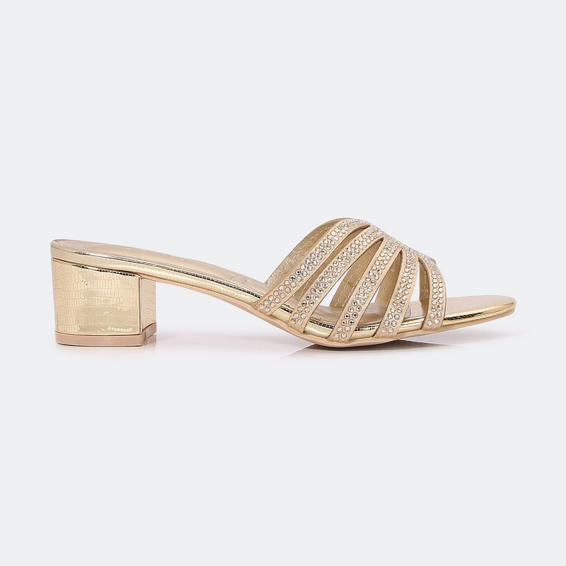 يجمع هذا النعال بين الراحة و الأناقة , تصميم من شرائط مزينة بالستراس الناعم , ذو كعب 4 سم