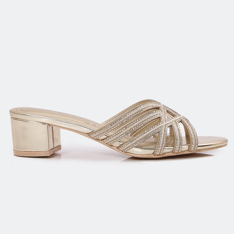 سيصبح هذا النعال ذو الكعب3سم العريض سم المفضل لديكِ، تصميم انيق براق مزين بالستراس, مناسب لكافة الأوقات