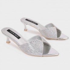 ZXQ1802 نعال كعب ذو مقدمة مدببة مزين بالستراس - Torino