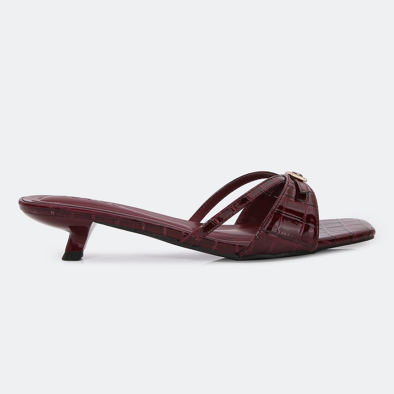 نقدم لكِ هذا النعال من تورينو، ذو مقدمة مربعة بنقشة من جلد الأفعى، كعب 2سم, مناسب للإستخدام اليومي