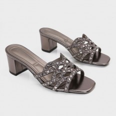 ZXQ1893 نعال كعب لامع ذو مقدمة مربعة مزينة بالستراس - Torino
