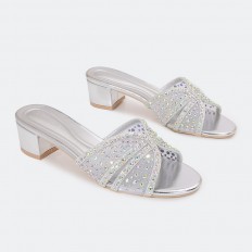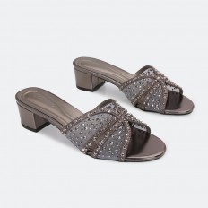 ZXQ1895 نعال كعب بجزء من التول مزين بالستراس