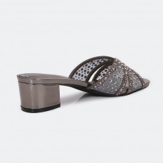 ZXQ1895 نعال كعب بجزء من التول مزين بالستراس - Torino