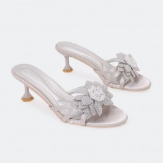 أضيفي لمسة من الأناقة والفخامة إلى إطلالتك مع هذا النعال المميز، بكعب 5سم، ومقدمة مستديرة مزينة بزهرة مرصعة بالكريستال، مناسب للأوقات المسائية
