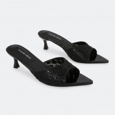 ZXQ2031 نعال كعب ذو مقدمة مدببة مزينة بالستراس الناعم - Torino