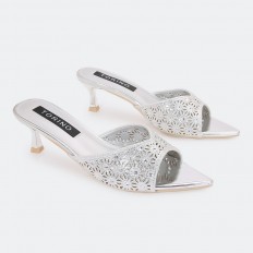 ZXQ2031 نعال كعب ذو مقدمة مدببة مزينة بالستراس الناعم