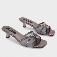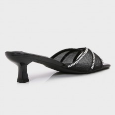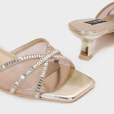 ZXQ2200 نعال كعب بجزء من التول المزين بالستراس