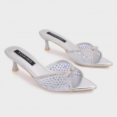 تألقي مع هذا النعال من تورينو , بكعب 5 سم ذو تصميم فخم من التول المزين بالستراس، متوفر بألوان يمكن تنسيقه مع خيارات مختلفة