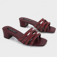 نقدم لكِ هذا النعال من تورينو، ذو كعب عريض4 سم، تصميم عصري مزين بالكريستال، يمكن تنسيقه مع إطلالات مختلفة