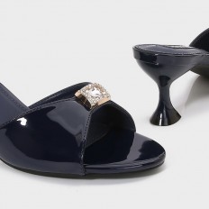 لا غنى عن هذا النعال ضمن تشكيلة أحذيتك، ذو كعب 5 سم ومقدمة مستديرة مزينة ببروش ، ألوان لامعة كلاسيكية، مناسب لكافة الأوقات