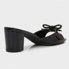 يعتبر هذا النعال مناسب لإطلالتك اليومية، ذو كعب عريض 5 سم، خامة من الجلد الصناعي اللامع بمقدمة مستديرة مزينة بفيونكا، متوفر بألوان لا غنى عنها