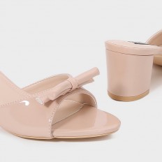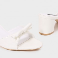 ZXQ2253 نعال كعب ذو مقدمة مستديرة مزين بفيونكا