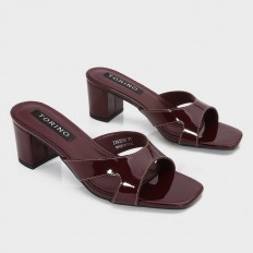 نعال كعب بتصميم عملي وأنيق, ذو مقدمة مربعة، وخامة من الجلد الصناعي اللامع، مناسب للإستخدام اليومي