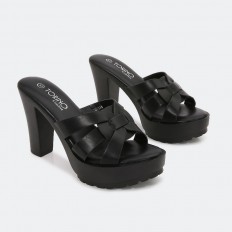 نعال نسائي من الجلد الفاخر ذو كعب 9cm لراحتك بشرائط جلدية متداخلة في عقدة لاطلالةو مميزة تسوقيه الان