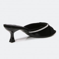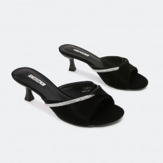 نعال بكعب صغير 4 سم بجزء أمامي من الشامواه بتصميم أنيق وخامة متينة مزين بحبل من الكريستال ,أضيفي الرقي والفخامة لجميع اطلالاتك