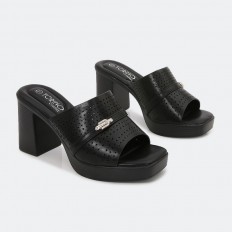 نعال نسائي مصمم بشسكل مفرغ في جهة علوية مرصع ببروش ناعم انثوي ذو كعب 7cm لاناقة لا حدود لها