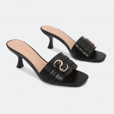 BXQ1759 نعال كعب من الجلد المزين بإبزيمين - Torino