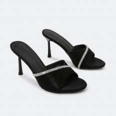 نقدم لك هذا النعال من تورينو، ذو مقدمة مستديرة و كعب رفيع 7 سم، مزين بحبل كريستال ، ذو ألوان لا غنى عنها، يمكن تنسيقها مع إطلالات مختلفة