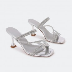 لا غنى عن هذا النعال ضمن تشكيلة أحذيتك ، ذو كعب لامع 7سم ، تصميم أنيق ومميز مزين بالكريستال مع فراشة في المقدمة، مناسب للحفلات