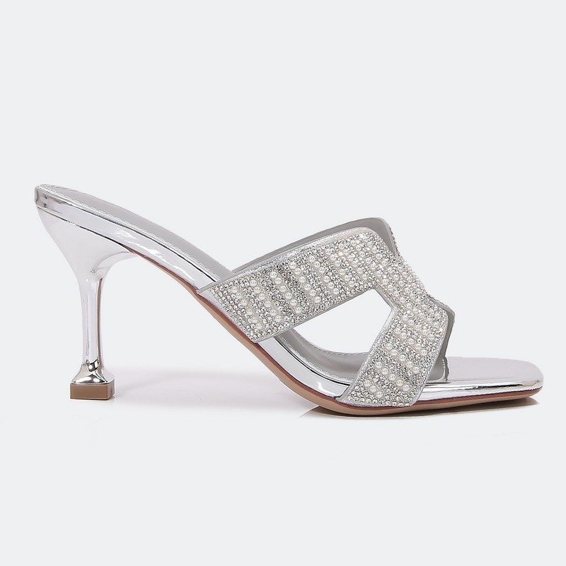 سيصبح هذا النعال المفضل لديكِ، ذو كعب 9سم ومقدمة مربعة, تصميم عصري بألوان لافتة مزين بالكريستال واللؤلؤ, مناسب للحفلات
