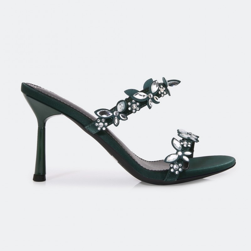 HXQ561 نعال كعب مزين بأحجار لامعة