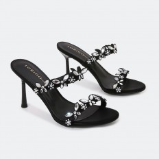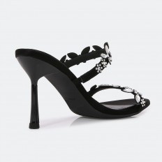 سيصبح هذا النعال بكعب 7 سم المفضل لديكِ , ذو تصميم عصري بألوان داكنة مميزة , مزين بأحجار لامعة على شكل فراشات