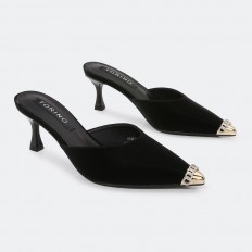 HXQB23 نعال كعب ذو مقدمة باللون الذهبي