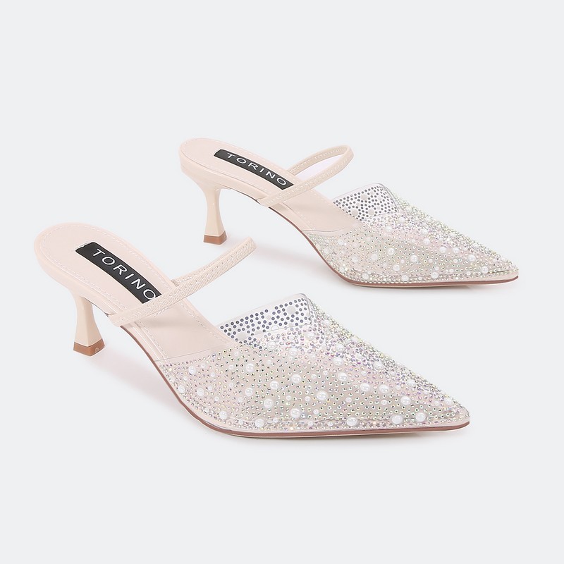 HXQB3 نعال كعب شفاف مزين باللؤلؤ و الستراس - Torino