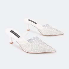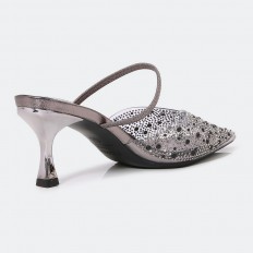 سيصبح هذا النعال بكعب 5 سم المفضل لديكِ , ذو مقدمة مغلقة , شفاف مزين باللؤلؤ و الستراس , مناسب لكافة الأوقات