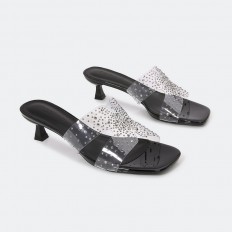 يعتبر هذا النعال مناسب لإطلالتك اليومية، ذو كعب 3 سم ومقدمة مربعة ، ذو جزء شفاف مزين بالستراس ، متوفر بألوان لا غنى عنها