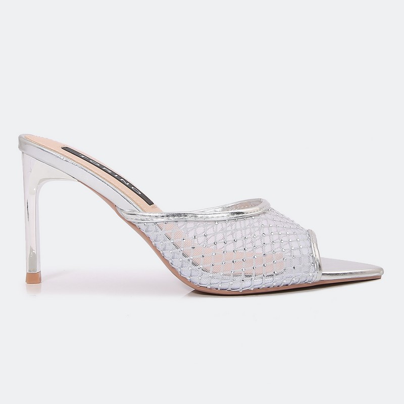 أضيفي الأناقة لإطلالتك مع هذا الكعب الرفيع واللامع9سم، بتصميم جذاب مقدمة مدببة خامة من التول المزين بالستراس، يمكن تنسيقه مع خيارات مختلفة