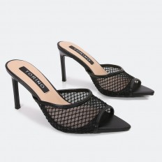 MXQ1745 نعال كعب ذو مقدمة من التول المزين بالستراس