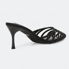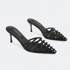 QXQ1530 نعال كعب بمقدمة مدببة مزين بأحجار لامعة - Torino