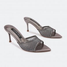 QXQ1606 نعال كعب فخم بجزء من التول مزين بالستراس - Torino