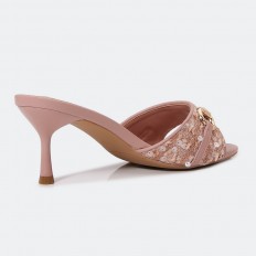 QXQ1832 نعال كعب رفيع مزين بالترتر - Torino