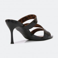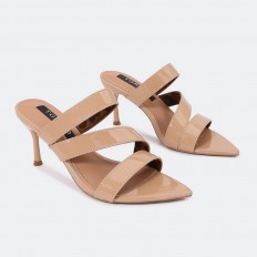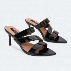 هذا النعال مناسب لإطلالتك اليومية، ذو كعب 7 سم رفيع، ومقدمة مدببة بخامة من الجلد الصناعي اللامع، يمكن تنسيقه مع خيارات مختلفة