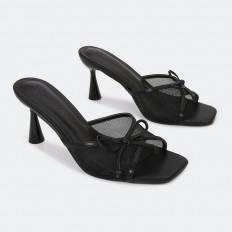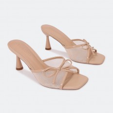 QXQ1941 نعال كعب أنيق بجزء من التول