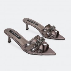 ZXQ1909 نعال كعب مزين ببروش براق - Torino