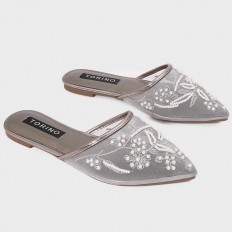 يُعد هذا النعال خيار مثالي لإطلالتك اليومية , تصميم أنيق بمقدمة من التول المطرز ومزين بحبات اللؤلؤ , متوفر بألوان أنيقة