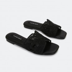 تألقي مع هذا النعال من تورينو, تصميم فخم بجزء من التول المطرز بفراشة مزينة بالستراس، متوفر بألوان لا غنى عنها، مناسب لكافة الأوقات