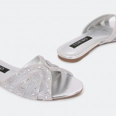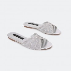 ZX2699 نعال مسطح بجزء من التول مزين بالستراس - Torino